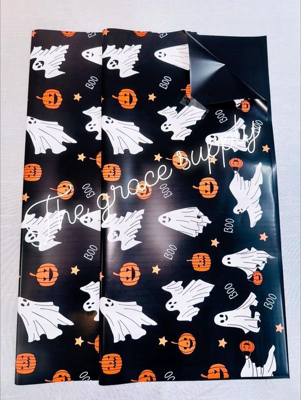 • Product Name: Black Ghost and Pumpkin Wrapping Paper.