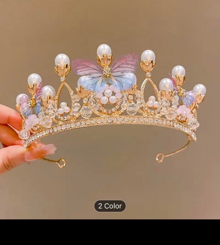 Enchanted Butterfly & Pearl Gold Tiara – Handcrafted Fantasy Headpiece Transform into royalty with this breathtaking Enchanted Butterfly Tiara. Adorned with delicate iridescent butterflies in soft pastel gradients, luminous pearls, and sparkling crystals, this gold-finish crown is the ultimate accessory for Quinceañeras, bridal portraits, or whimsical fairytale-themed events. A true statement piece that radiates elegance and magic.