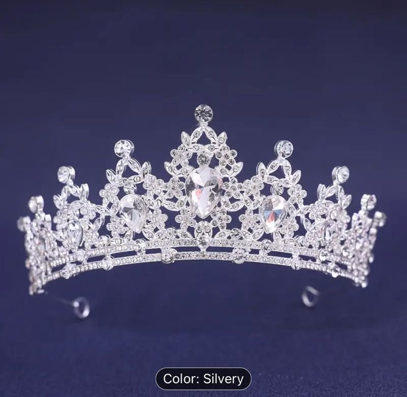 Majestic Silver Queen Crown – High-Brilliance Clear Crystal Tiara Rule with timeless elegance. Our Silver Queen Style Crown features a breathtaking towering silhouette, meticulously encrusted with hundreds of shimmering clear crystals and majestic teardrop centerpieces. Finished in a polished silver plating, this tiara is the ultimate accessory for brides, pageant winners, and Quinceañeras seeking a look of pure, diamond-like royalty.