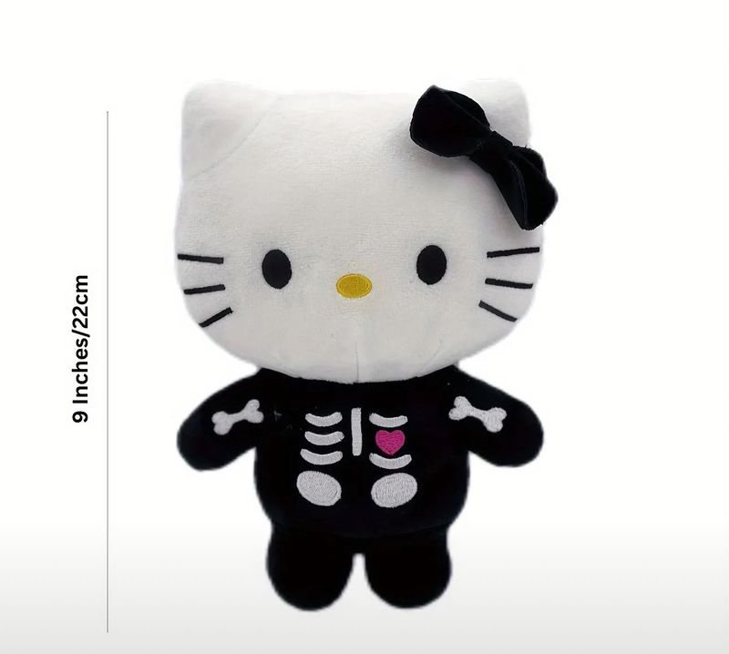 Every detail is designed to delight, from the signature black bow on her ear to the sweet, embroidered pink heart resting on her chest. Crafted from ultra-soft, premium materials, this 9-inch plush is perfect for Halloween decor, shelf displays, or as a unique gift for fans of alternative character merchandise. Whether you are looking to treat yourself or surprise a friend, the Skull Hello Kitty brings a perfect touch of edgy fun to any collection.